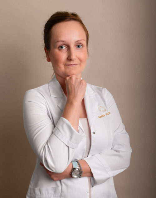 Dyplomowany lekarz medycyny estetycznej oraz medycyny przeciwstarzeniowej, pasjonująca się w wydobywaniu naturalnego piękna oraz spowalnianiu procesów starzenia się poprzez zabiegi medycyny estetycznej, poprawę samopoczucia oraz ogólnej kondycji ciała. Pani doktor w pracy posługuje się wyłącznie sprawdzonymi, wysokiej jakości produktami, chętnie sięgając również po produkty autologiczne typu osocze bogatopłytkowe, czy fibryna.